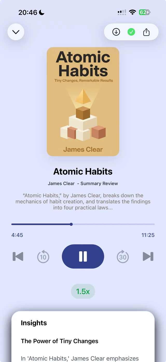 “I have zero free hours to read, and with this app I put on an audiobook while I'm stuck in traffic or doing dishes. In 2 months I've finished more books than in all of 2024.”